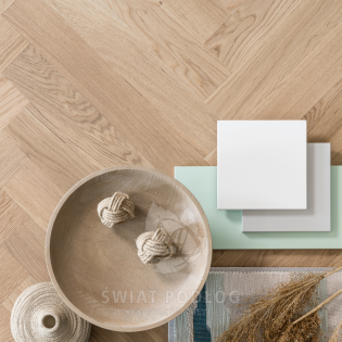 Podłogi w klasie Living mają zróżnicowaną kolorystykę z widocznymi przebarwieniami. Wyrazista biel maluje na deskach jasne smugi, które tworzą niepowtarzalny efekt. Sęki wypełniane są niedopuszczalne